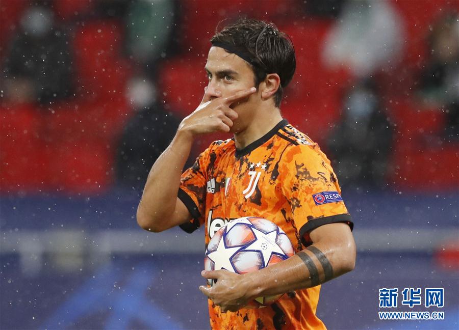 11月4日,尤文图斯队球员迪巴拉庆祝进球。 当日,在2020-2021赛季欧冠联赛小组赛G组第三轮比赛中,意大利尤文图斯队客场以4比1战胜匈牙利费伦茨瓦罗斯队。 新华社/路透