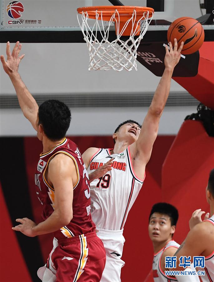 11月5日,广东东莞大益队球员马力克(左二)在比赛中上篮。 当日,在浙江诸暨举行的2020-2021赛季中国男子篮球职业联赛(CBA)第一阶段第九轮比赛中,广东东莞大益队以131比106战胜山西汾酒股份队。 新华社记者 沙达提 摄