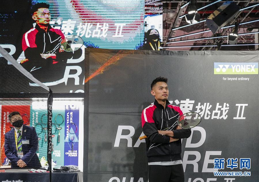 11月7日,羽毛球奥运冠军林丹在第三届进博会消费品展区尤尼克斯展台亮相。新华社记者 张玉薇 摄