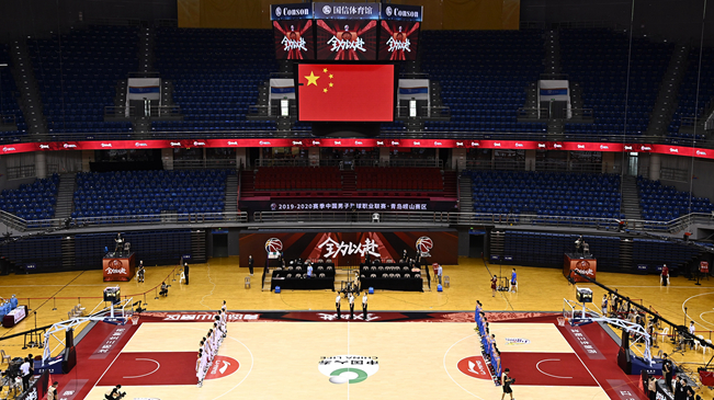当日,在山东青岛举行的2019-2020赛季中国男子篮球职业联赛(CBA)复赛第二阶段(红岛赛区)比赛中,北京首钢队对阵北京控股队。