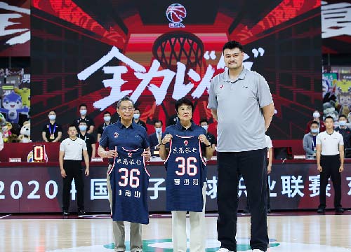 2020年7月3日,广东东莞,19/20CBA复赛第一阶段第14日,肯帝亚Vs宏远,姚明、钟南山夫妇观战。