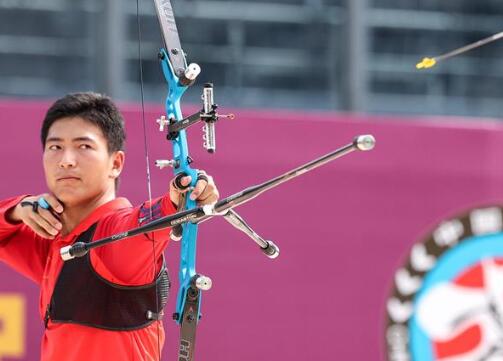 在位于南京的江苏省方山体育训练基地举行的射箭项目东京奥运会模拟赛男子反曲弓个人比赛中,国家三队选手王岩获得第二名。