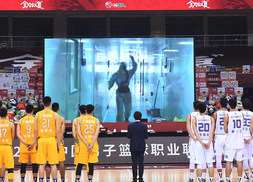 6月20日,在青岛国信体育馆举行的首场比赛前,中国篮协举行了“致敬抗疫英雄”纪念、默哀仪式。