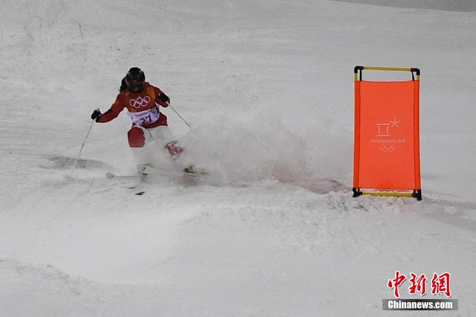 2月11日,平昌冬奥会举行自由式滑雪雪上技巧比赛,中国选手关子妍在半决赛第二组进行比赛,其最终无缘自由式滑雪雪上技巧决赛。图为关子妍在半决赛中。 中新社记者 崔楠 摄
