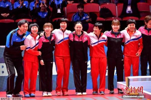 国际乒联3日宣布,本应参加2018年世界乒乓球团体锦标赛女子组四分之一决赛的朝鲜和韩国队将组成联队,直接参加半决赛。原定当地时间上午10时的比赛如期开始,朝鲜队和韩国队队员先后入场,但并没有进行比赛,而是互相微笑握手致意,随后开始进行合影。现场播音员随即宣布,朝鲜队和韩国队将合并成为朝韩联队,参加余下的比赛。