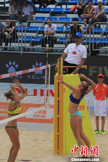 中新网晋江5月31日电 (记者 孙虹)2018年世界沙滩排球巡回赛(晋江站)31日在福建省晋江市龙湖镇衙口景区举行,吸引来自澳大利亚、墨西哥、奥地利等26个国家和地区的64支队伍、100多名选手参赛。