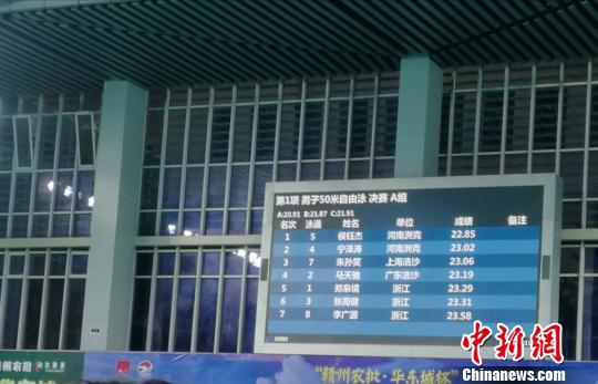 6月23日晚,在全国夏季游泳锦标赛50米自由泳决赛上,河南选手侯钰杰和宁泽涛分别以22秒85和23秒02成绩获得冠军、亚军。 当天,在江西赣州举办的2018年全国夏季游泳锦标赛暨“我要上青奥”选拔赛暨亚运会选拔赛进入第2天。