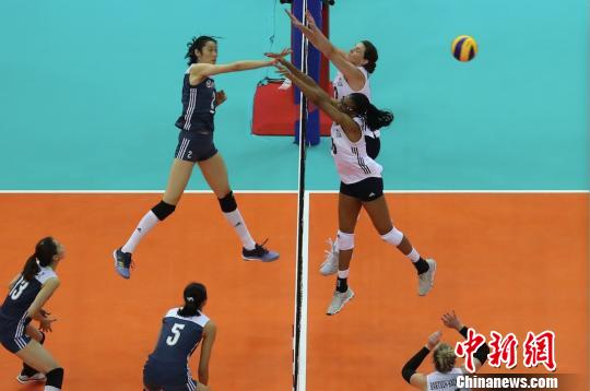 30日晚,在南京举行的2018世界女排联赛总决赛的半决赛中,中国队对阵美国队。 泱波 摄