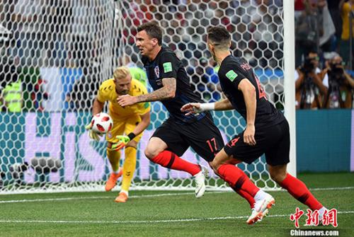 图为克罗地亚队进球瞬间。 中新社记者 毛建军 摄