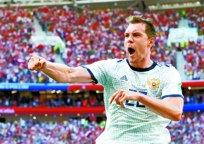 显然,西班牙队低估了东道主的战斗力。在主场球迷山呼海啸般的加油助威声中,俄罗斯队上半场后半段不断通过反击冲击对方腹地。第41分钟,西班牙队后防果然出现了错误,俄罗斯队抓住机会扳平比分:久巴在角球混战中头球攻门,球打在了对方后卫皮克伸起的手上,主裁判判罚点球。