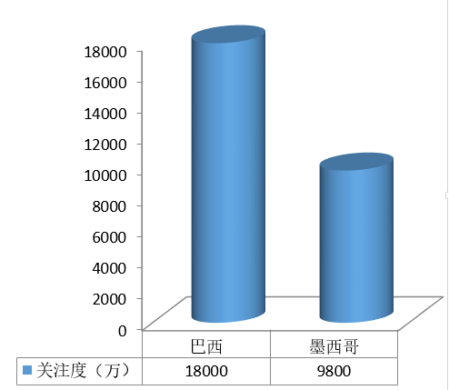 巴西VS墨西哥:关注度1.8亿VS关注度9800万