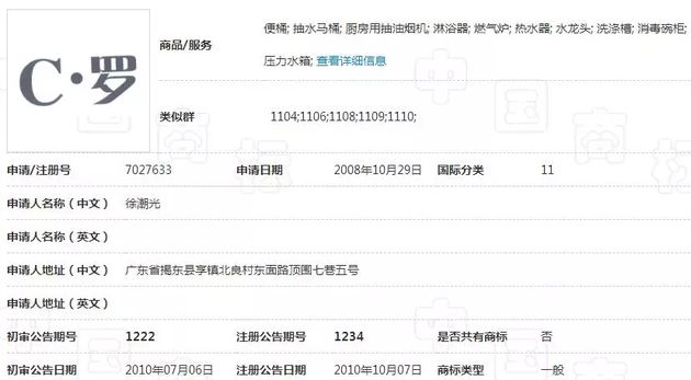 “C罗”早在十年前就被抢注成抽水马桶商标。