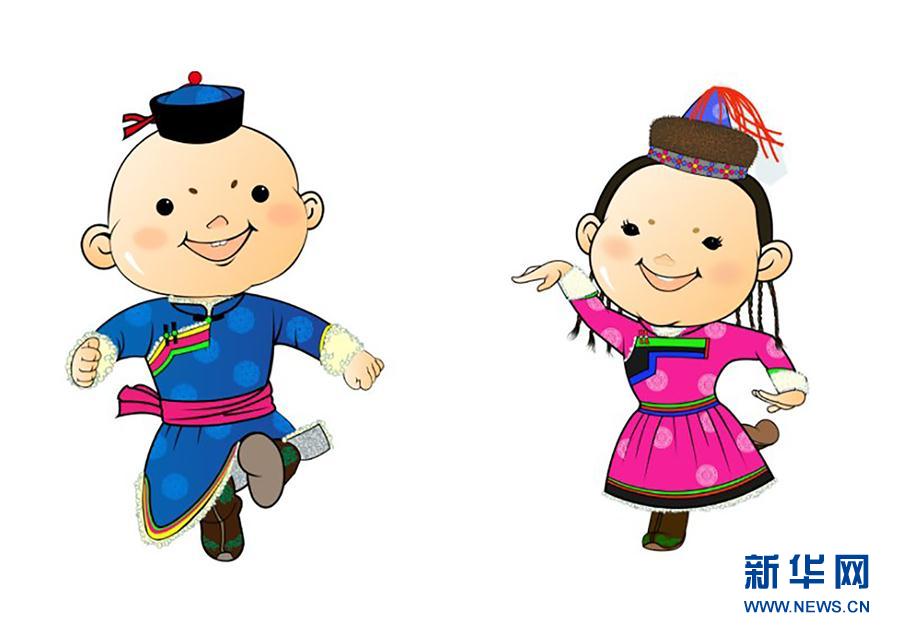 “十四冬”吉祥物——蒙古彩娃是以蒙古族儿童为创意原型,设计了一对俏皮可爱的蒙古族娃娃形象。蒙古彩娃有着内蒙古鲜明的地域特征,男娃蒙古语名为“安达”,汉语译为 “朋友”,女孩蒙古语名为“赛努”,汉语译为 “你好”,名字组成“朋友你好”,传递了内蒙古人民对全国人民的诚挚邀请,对八方客朋的亲切问候,对冬运会运动员赛出佳绩的美好祝愿,体现了和平和友谊的体育精神内涵,彰显了内蒙古人民热情好客、健康快乐的良好精神面貌。