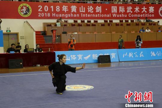 中新网黄山7月30日电 (刘浩 冯劼)由国家体育总局武术运动管理中心、中国武术协会、黄山市人民政府等单位共同主办的2018年黄山论剑·国际武术大赛30日在黄山市体育馆举行,来自美国、法国等27个国家和地区以及国内16个省、市54支队伍600余人参赛。