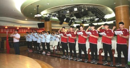 女排全体运动员和辅助人员宣誓。图片来源:国家体育总局网站