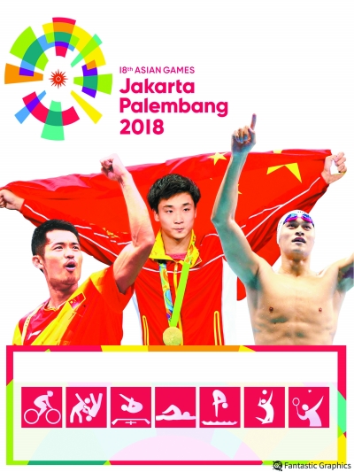 本届亚运会代表团中,自行车、跆拳道、蹦床、游泳、跳水、排球、羽毛球7个项目共有19名奥运会冠军,包括曹缘、陈艾森、谌龙、董栋、林丹、施廷懋、孙杨、张楠、赵帅、钟天使、丁霞、龚翔宇、林莉、刘晓彤、颜妮、杨方旭、袁心玥、张常宁、朱婷等。其中林丹参加了近三届奥运会、亚运会。
