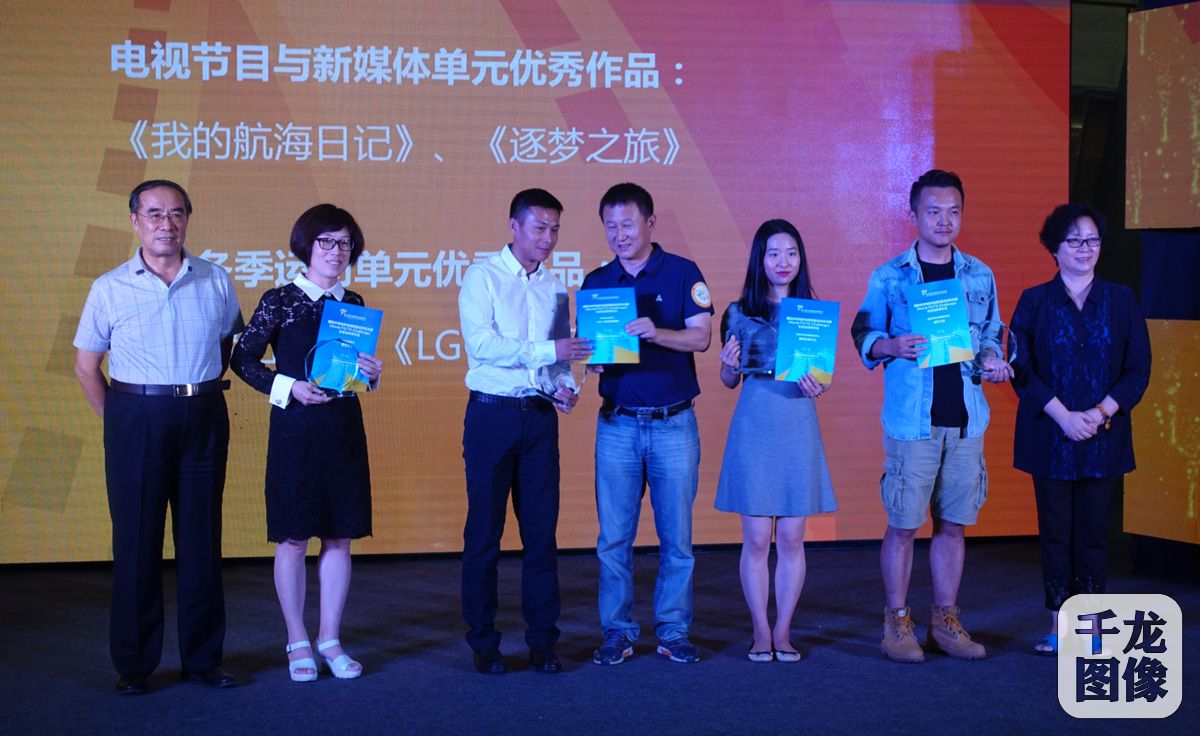 8月13日,第十四届北京国际体育电影周闭幕式及颁奖典礼在鸟巢文化中心举行,50部跑步题材影视作品荣获传媒荣誉奖,21部体育影片荣获米兰国际体育电影电视节全球总决赛北京站优秀作品奖,并将代表中国参加被誉为“全球体育电影奥斯卡”的米兰国际体育电影电视节总决赛。图为与会嘉宾为获奖作品颁奖。千龙网记者 戚连民摄