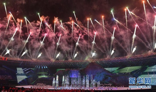 这是开幕式上燃放烟花(8月18日摄)。 新华社记者朱炜摄
