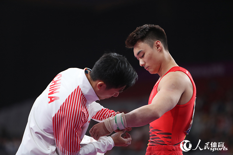 人民网雅加达8月20日电(记者 赵欣悦 摄影报道)当地时间20日下午1点,2018雅加达亚运会体操男子全能比赛开赛,全能比赛同时也是团体和各单项的预赛,意义重大。本次全能比赛共分三个小组进行,中国队被分在第一小组率先出场,中国最大的对手日本队则分在第二个小组。