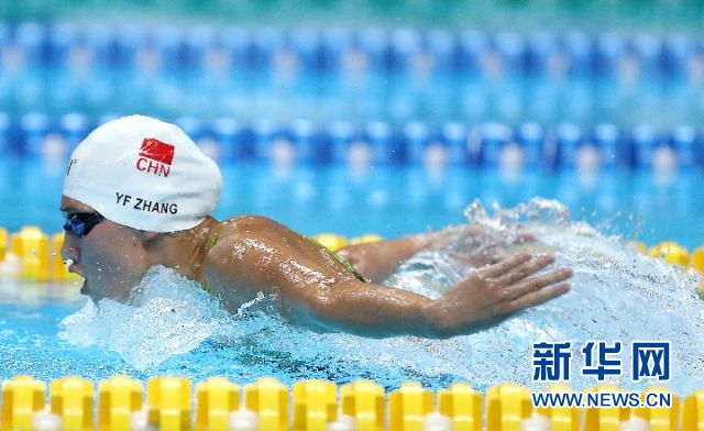 ↑在亚运会女子200米蝶泳决赛中,中国选手张雨霏以2分06秒61的成绩夺冠。新华社记者费茂华摄