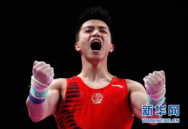 ↑中国队选手林超攀在最后一项单杠比赛后庆祝。在亚运会体操男子团体决赛中,中国队获得冠军,日本队获得亚军,韩国队获得季军。新华社记者王丽莉摄