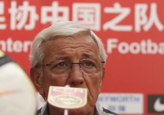 11月19日,中国队主教练里皮在发布会上回答记者提问。(新华社)