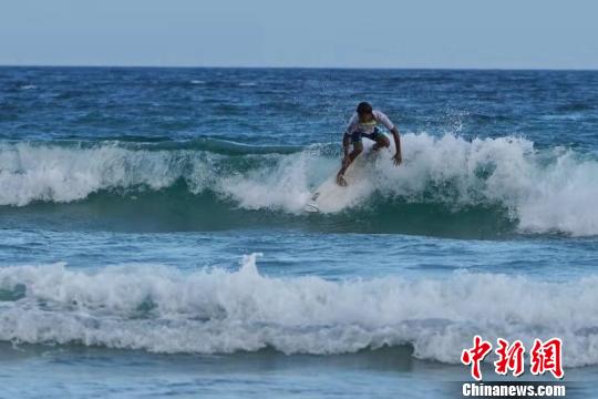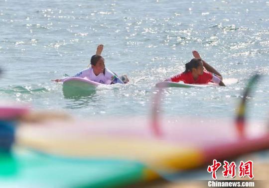 中新网万宁12月6日电(林檎)2018年全国冲浪冠军赛6日在海南万宁市正式开赛。当日,来自全国各地的50名女选手参赛,角逐浪尖上的冠军。