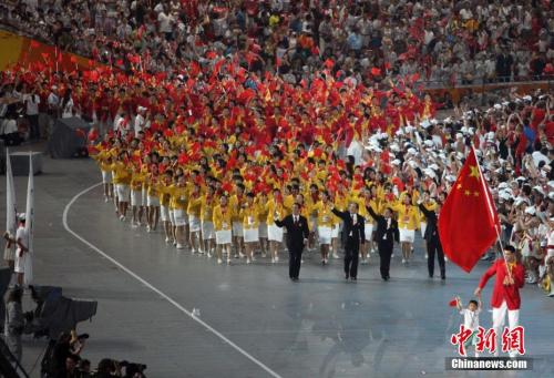 2008年8月8日,第29届夏季奥运会在北京国家体育场“鸟巢”举行。中国代表团的旗手是著名篮球运动员姚明。中新社记者 任晨鸣 摄