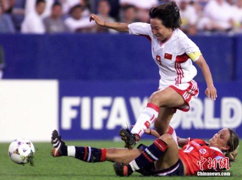 1999年,中国女足获得该届女足世界杯亚军,孙雯凭借7粒进球,荣膺金靴奖和金球奖,书就“铿锵玫瑰”的辉煌。中新社记者 闻国剑 摄