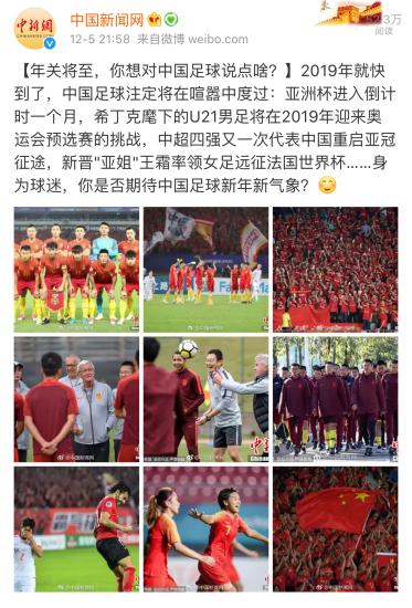 中新网客户端北京12月25日电(王思硕) 对于中国足球而言,挥手作别的2018年喜忧参半。而行将到来的2019年,我们又要迎来包括男足亚洲杯、女足世界杯、国奥奥运预选赛等重重难关的考验。