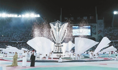 15分钟的激情澎湃,24只象征24支参赛球队的猎鹰模型凌空飞翔,50名鼓手、200位舞者以及众多志愿者的载歌载舞……阿布扎比扎耶德体育城球场一场精心打造具有浓郁西亚风格的开幕盛宴,将亚洲足球迎进万众瞩目的亚洲杯时间。