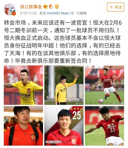 此外还有爆料称,包括徐新、张文钊、王上源、郑龙、邹正、荣昊等在内的球员都将被恒大的清洗。中超这一冬窗期的内援流动堪称“乾坤大挪移”,势必会对新赛季的联赛格局产生巨大影响。