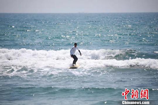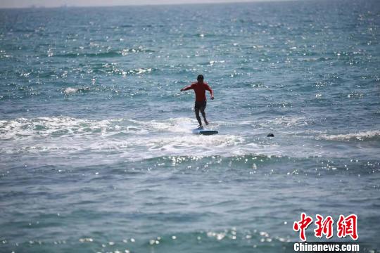 选手在日月湾冲浪。 万宁市委宣传部供图 摄