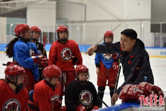 当地时间2月27日,中国大学生女子冰球队正在听取教练的训练要求。中国青年报·中青在线特派记者 慈鑫/摄