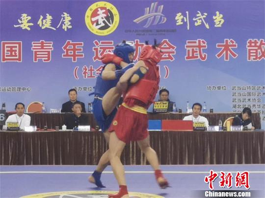 中新网十堰5月8日电 (郭军)第二届全国青年运动会武术散打预赛(社会俱乐部组)8日在武当山开赛,来自北京、天津、吉林、黑龙江、浙江、福建、广东、湖南、重庆、新疆等全国24个省(市、区)的41支运动队共308人参赛。
