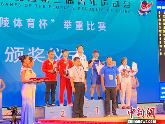 彭翠婷在第二届全国青年运动会体校甲组女子71公斤级的赛事中,抓举成绩打破全国青年纪录。 刘小红 摄