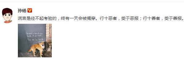 中新网8月30日电 30日,中国游泳名将孙杨在个人社交媒体上再度发文,称“谎言是经不起考验的,终有一天会被揭穿”,疑似回应此前备受关注的“拒检”事件。