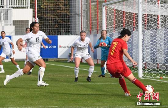 10月21日,第七届世界军人运动会女足小组赛在武汉举行。中国八一女足(红衣)4:0轻取美国女足,以小组第一名的成绩晋级。中新社记者 安源 摄