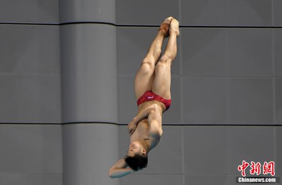 10月24日,第七届世界军人运动会跳水项目在湖北省武汉市举行,中国八一跳水队在跳水项目比赛上斩获3枚金牌。中国八一跳水队员王宗源在男子1米跳板比赛上获得金牌。图为王宗源在比赛中。中新社记者 安源 摄