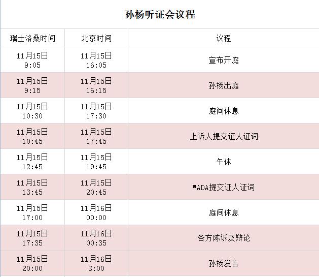 随着举行时间的日益临近,关于这场听证会的更多细节得以披露。北京时间13日,CAS公布了听证会的具体流程。听证会的会场将于当地时间11月15日上午九点零五分(北京时间下午四点零五分)正式开庭。