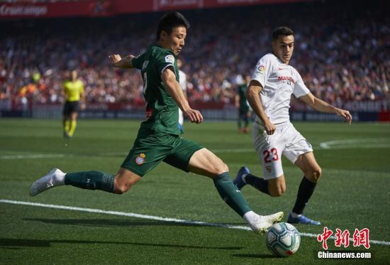 资料图:北京时间2月16日,西甲24轮西班牙人2:2战平塞维利亚。中国球员武磊首发登场,并在比赛的第49分钟破门,打入本赛季个人首粒联赛客场进球。