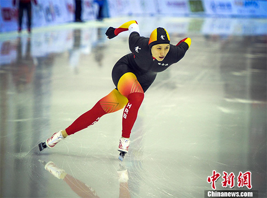 资料图:中国速滑名将张虹在比赛中。 刘新 摄