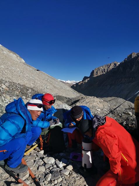 据介绍,5月6日晚上,队员在海拔5800米的过渡营地睡眠状态良好。5月7号早上10时队员们吃过早餐,在营地进行了重力仪测量。西藏圣山登山探险服务有限公司派出4名长住过渡营地的后勤人员,为队员们提供后勤保障服务。