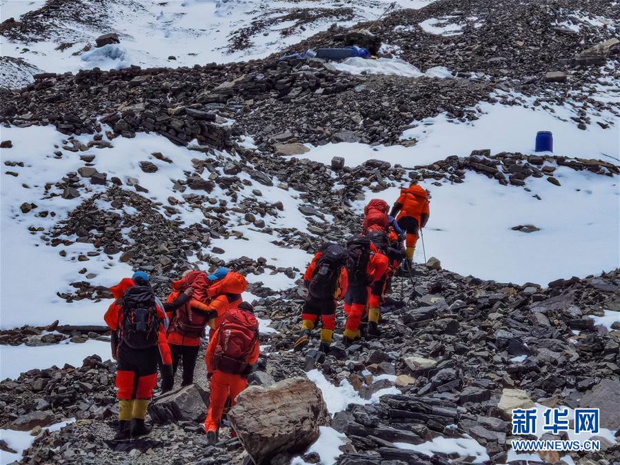 5月24日,2020珠峰高程测量登山队部分人员从海拔6500米的前进营地出发。新华社特约记者 拉巴 摄