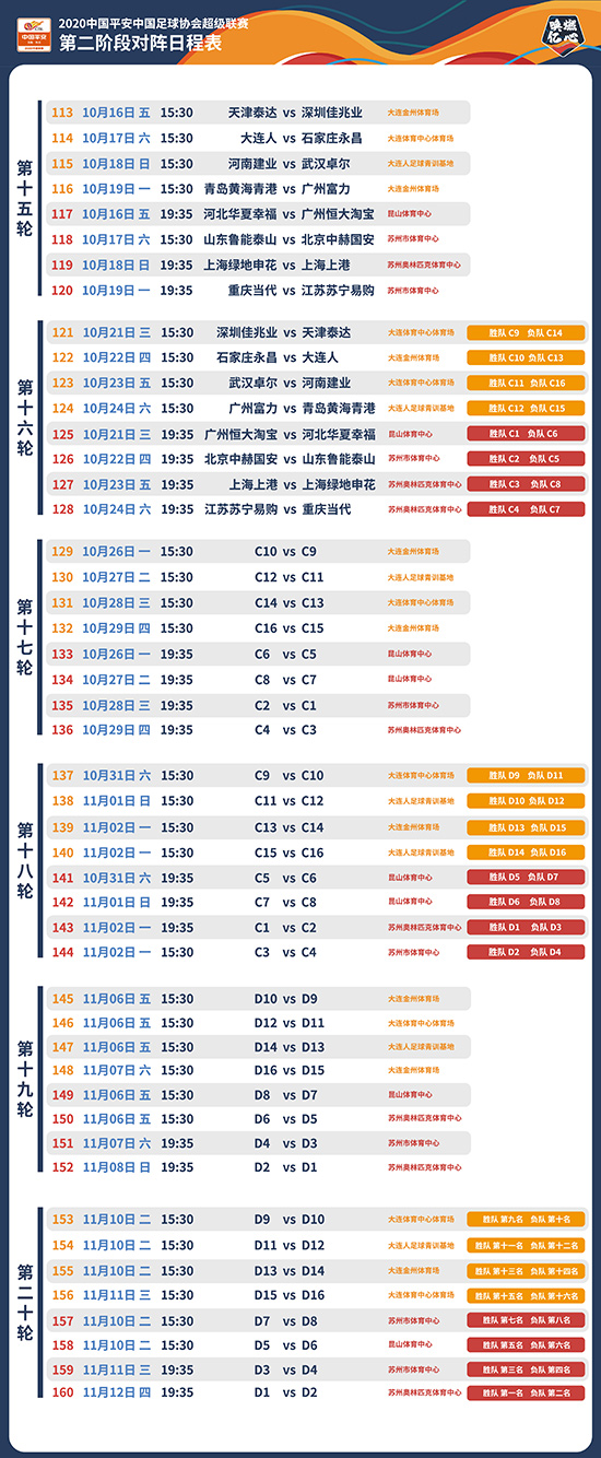 附:中超第二阶段对阵日程表(来源中超联赛官网)