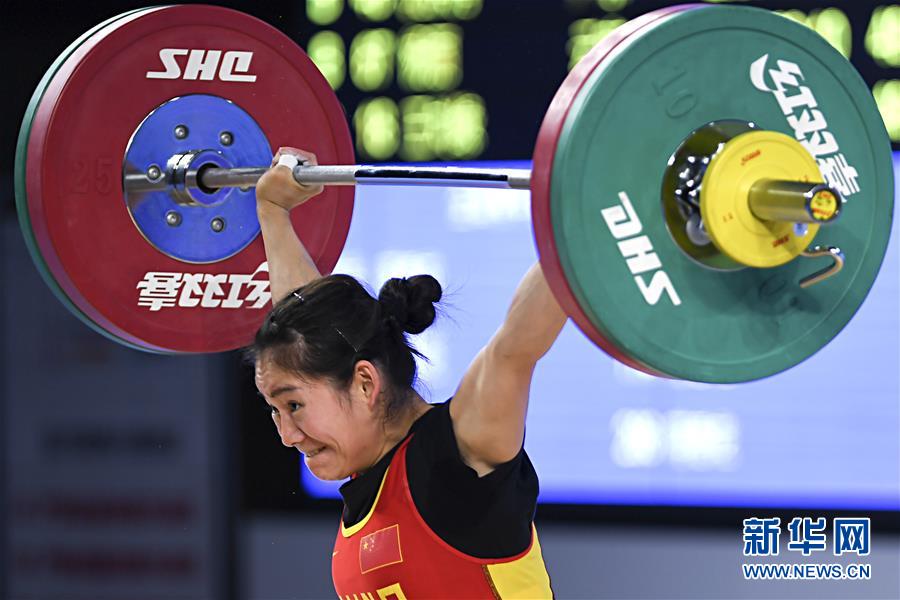 10月16日,重庆队选手刘凤在抓举比赛中。 当日,在“崀山杯”2020年全国女子举重锦标赛暨东京奥运会模拟赛49公斤级A组比赛中,重庆队选手刘凤以抓举93公斤、挺举116公斤、总成绩209公斤获得第一名。 新华社记者 薛宇舸 摄