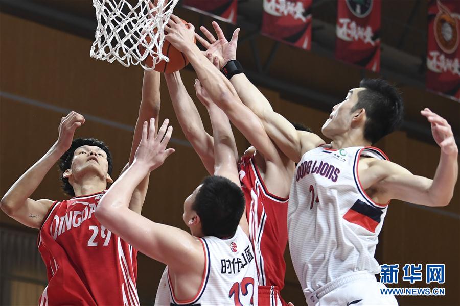 10月20日,青岛国信海天队球员高世鳌(左一)、时代中国广州队球员郭凯(右一)在比赛中拼抢篮板球。 当日,在浙江诸暨举行的2020-2021赛季中国男子篮球职业联赛(CBA)第一阶段第二轮比赛中,青岛国信海天队以112比88战胜时代中国广州队。 新华社记者沙达提摄