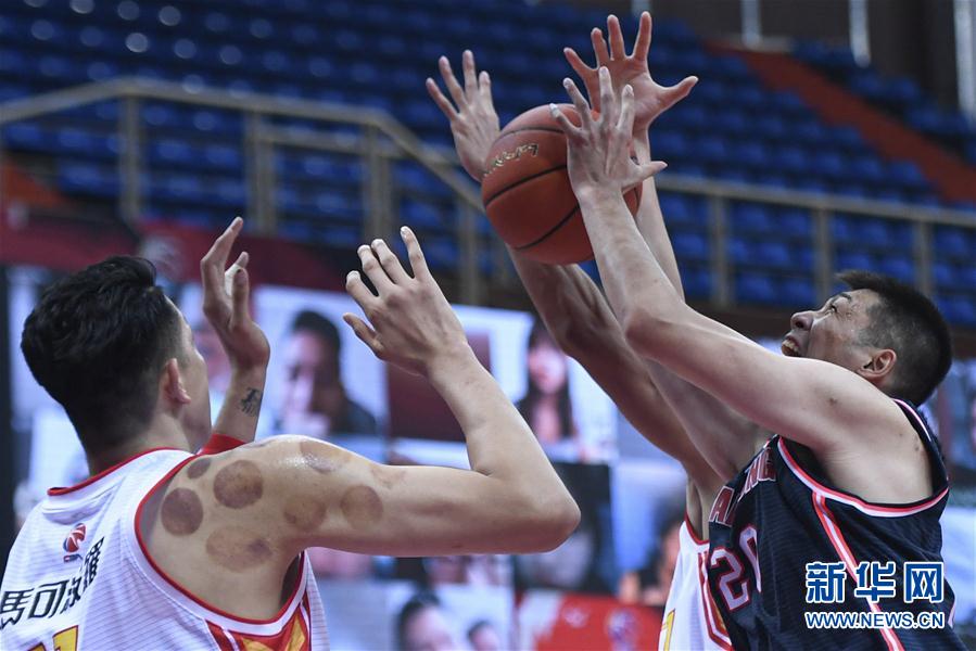 10月20日,广东东莞大益队球员任骏飞(右)在比赛中争抢篮板球。 当日,在浙江诸暨举行的2020-2021赛季中国男子篮球职业联赛(CBA)第一阶段第二轮比赛中,广东东莞大益队以134比126战胜深圳马可波罗队。 新华社记者黄宗治摄