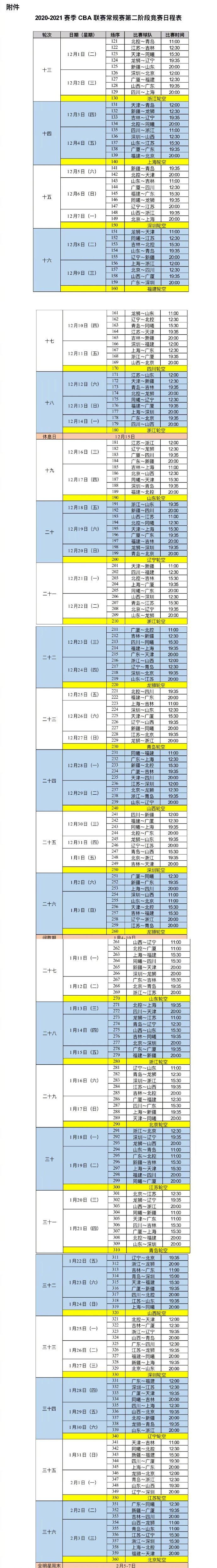 原标题:CBA第二阶段赛程:12月1日开打 2021年2月全明星赛