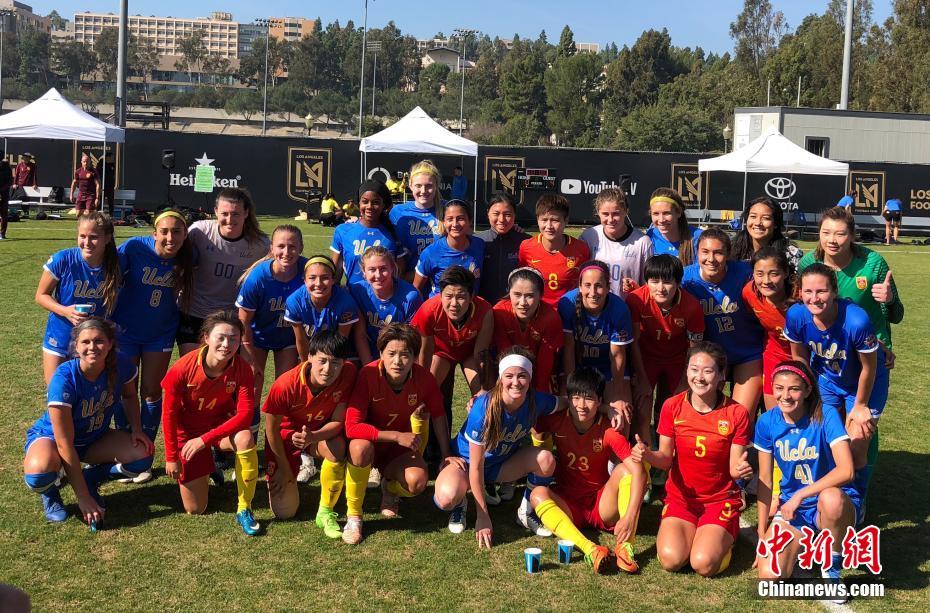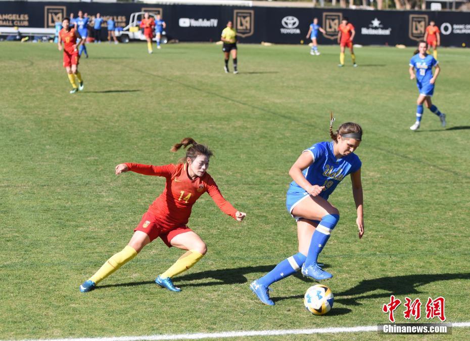 当地时间2月9日上午,正在美国洛杉矶冬训的中国国家女子足球队对战2017年全美女足大学联赛亚军加州大学洛杉矶分校女足。这是中国女足此次海外拉练的第三场比赛,中国队以4比0取胜。中新社记者 张朔 摄